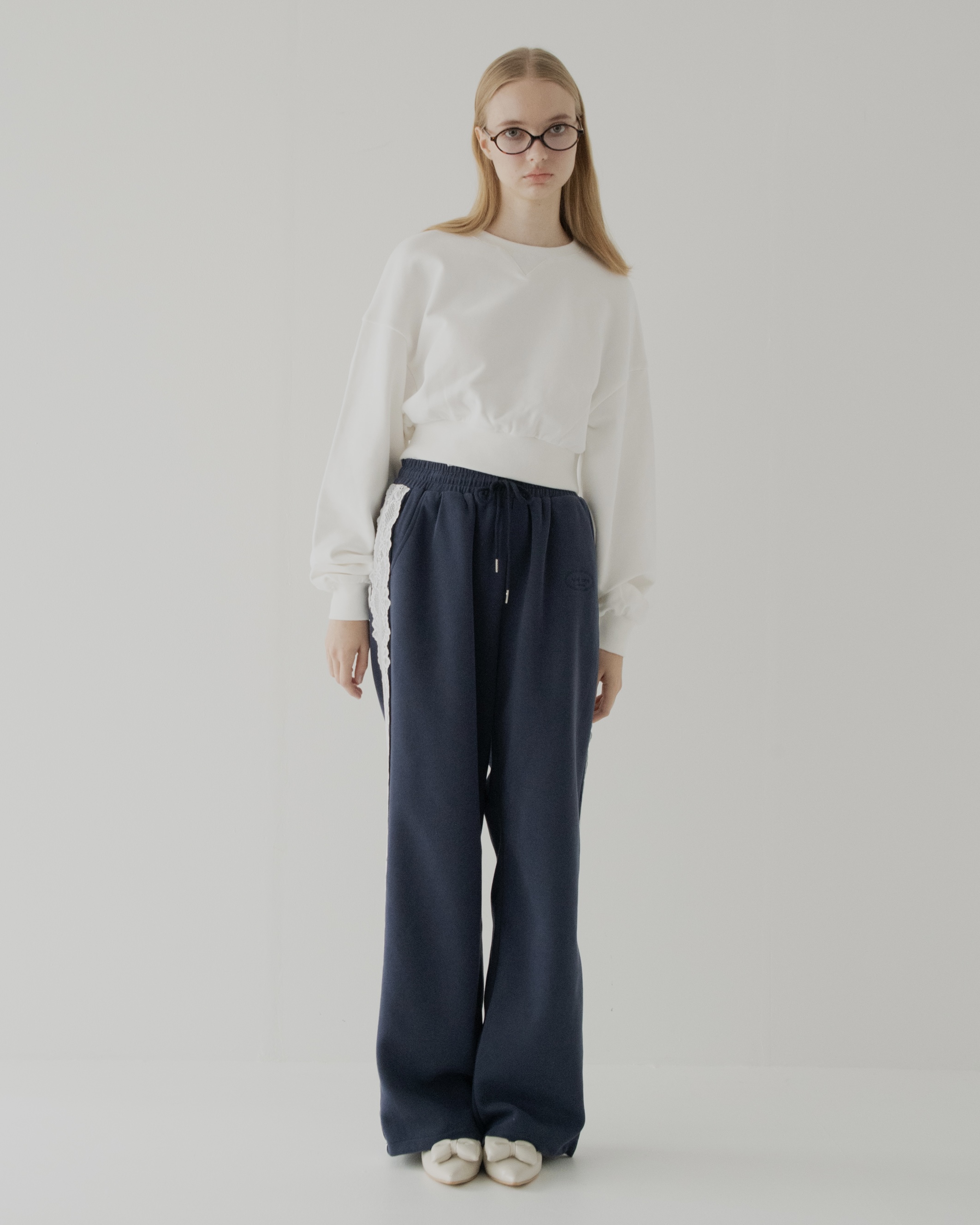 背中には、レースで縁取ったブランドロゴをオン。